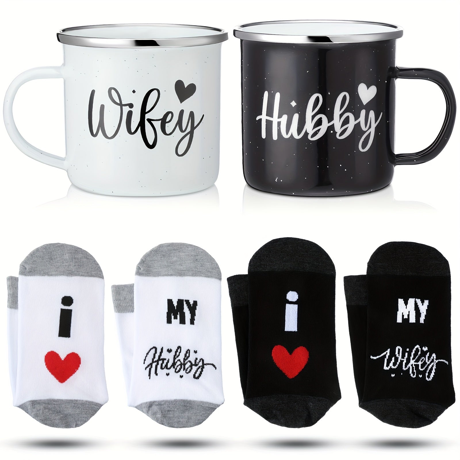 4 Pack Hubby and Wifey Gifts Wifey and Hubby Enamel Couples Coffee Mugs Couples Socks for Bride EngaSynthetic Gemstoneent Groom Wedding Gifts Party Packs
