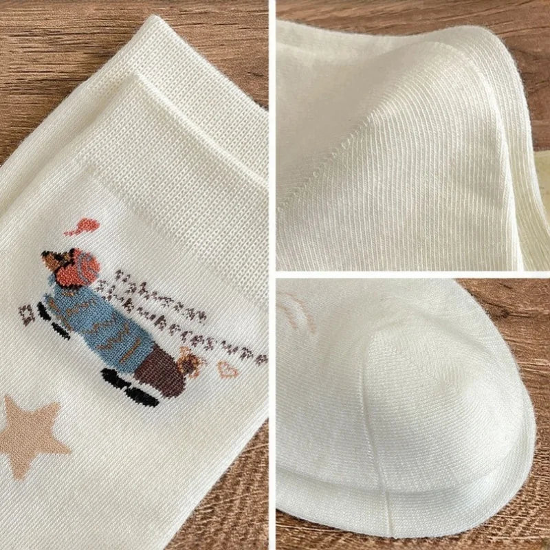 Cartoon Dachshund Women's Mid-Calf Socks Spring Summer Cotton Kawaii Cute Crew Socks Trendy Fashion Novelty Socks for Girls