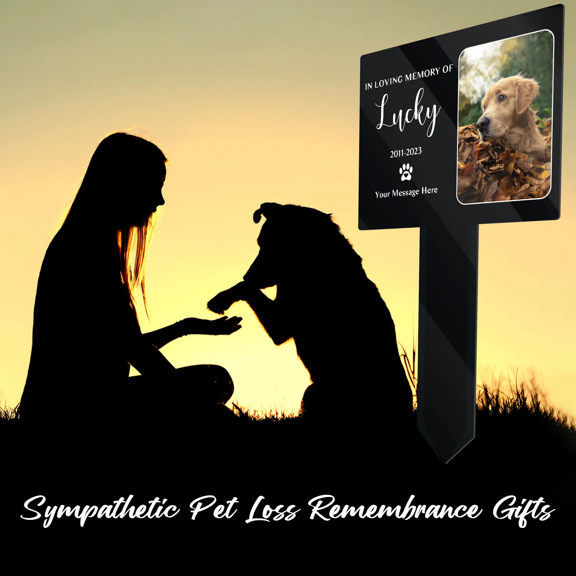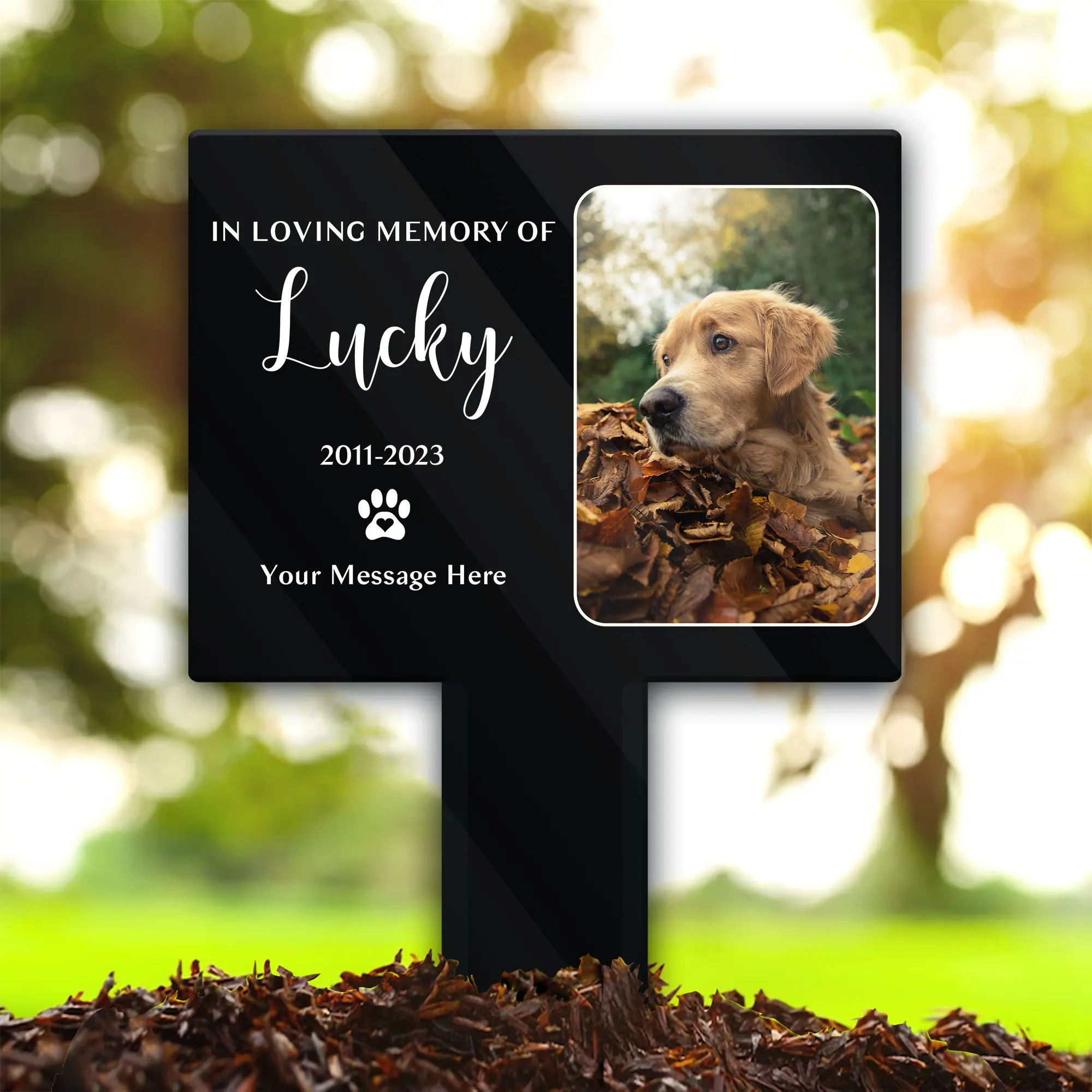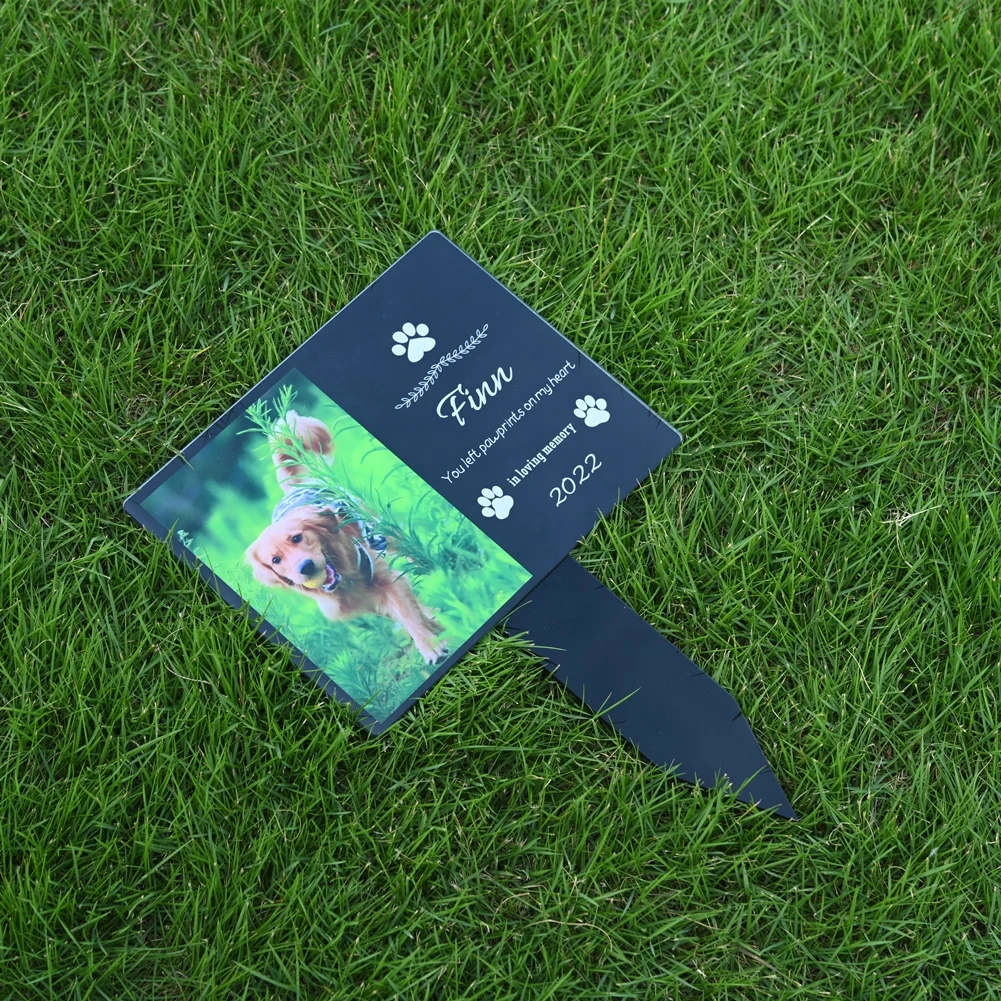 Custom Dog & Cat Memorial Garden Stake – Personalized Pet Grave Marker with Paw Prints