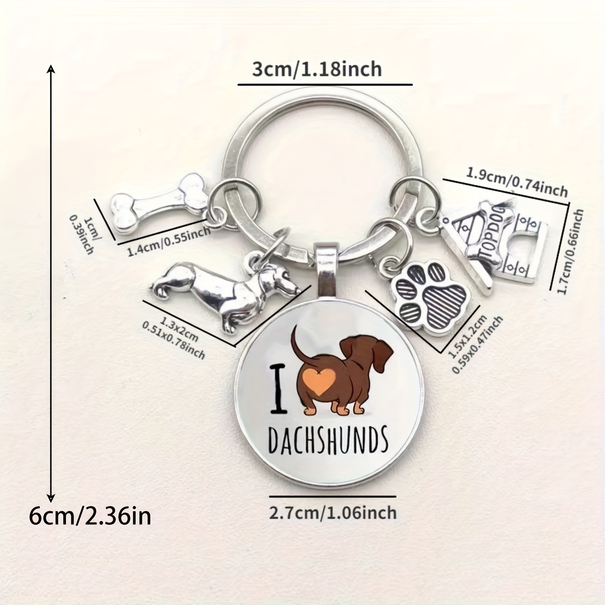 Cute Dachshund Dog Keychain - Golden Keychain Ring, Wallet, Backpack Charm - Gift for Pet Lovers, Dog Moms, and Dads
