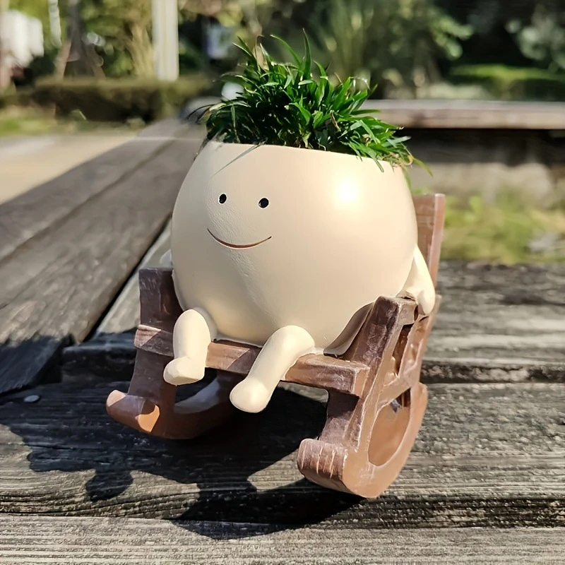 Cute Smiling Face Swing Planter Resin Wall Hanging Flower Pot For Succulents And Small Plants Perfect Garden Home Decor Supplies