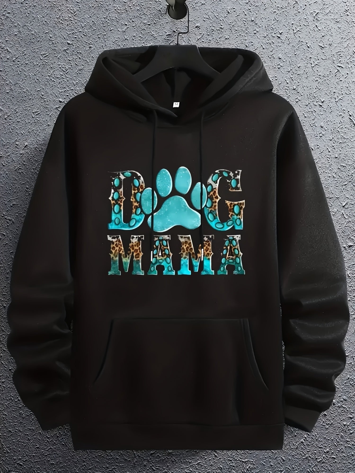 Fashionable Dog Mother Print Warm Pullover Hoodie, 250g, Casual Black Sweatshirt with Kangaroo Pocket, Long Sleeve Hoodie for Fall and Winter, Men'S Birthday Gifts, Unisex 2025 Couple Sweater Hoodie