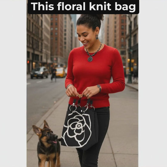 Bring a playful twist to your outfit with our Floral Knit Bucket Handbag.