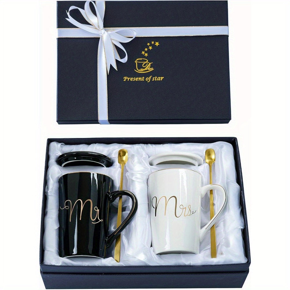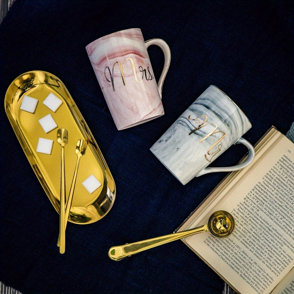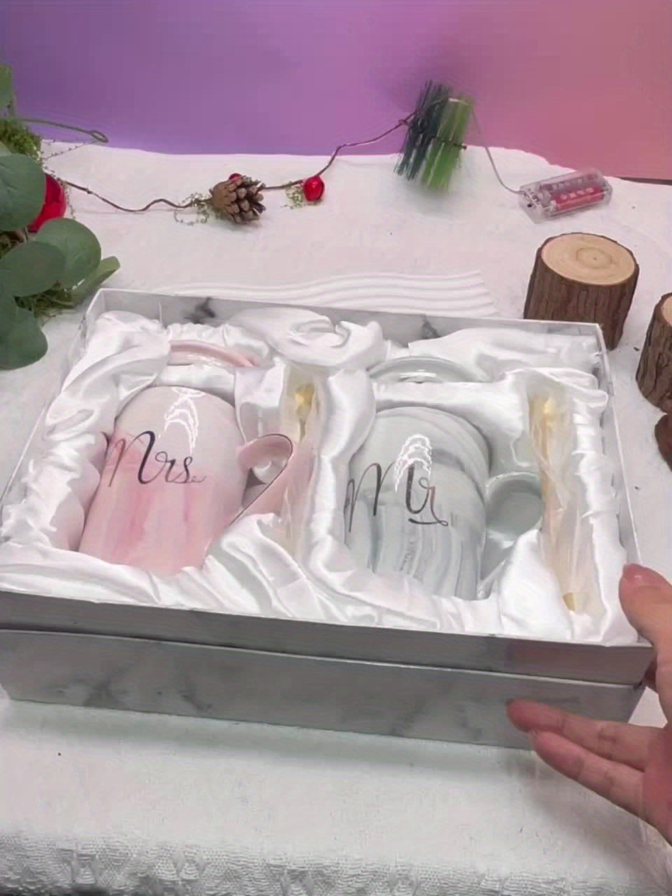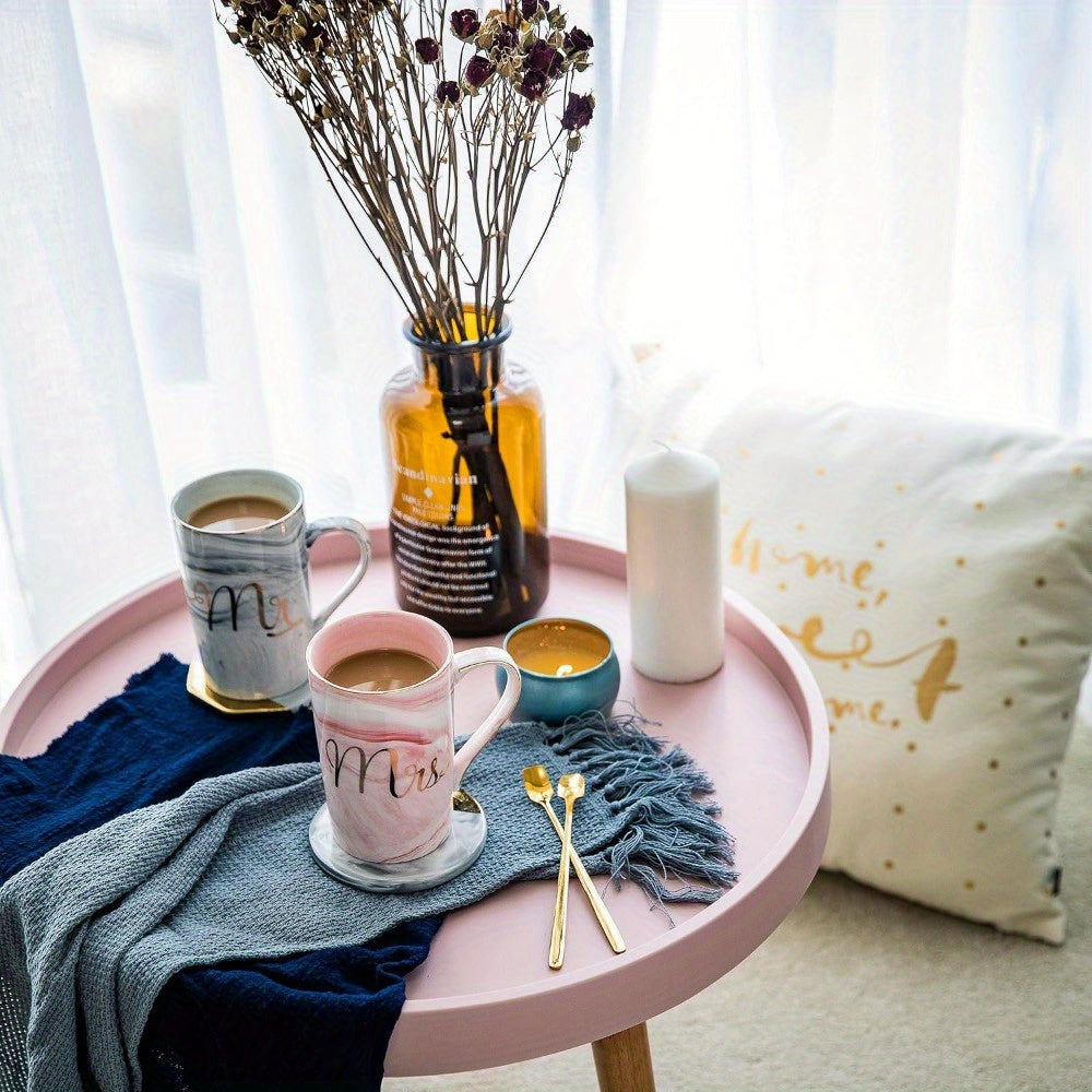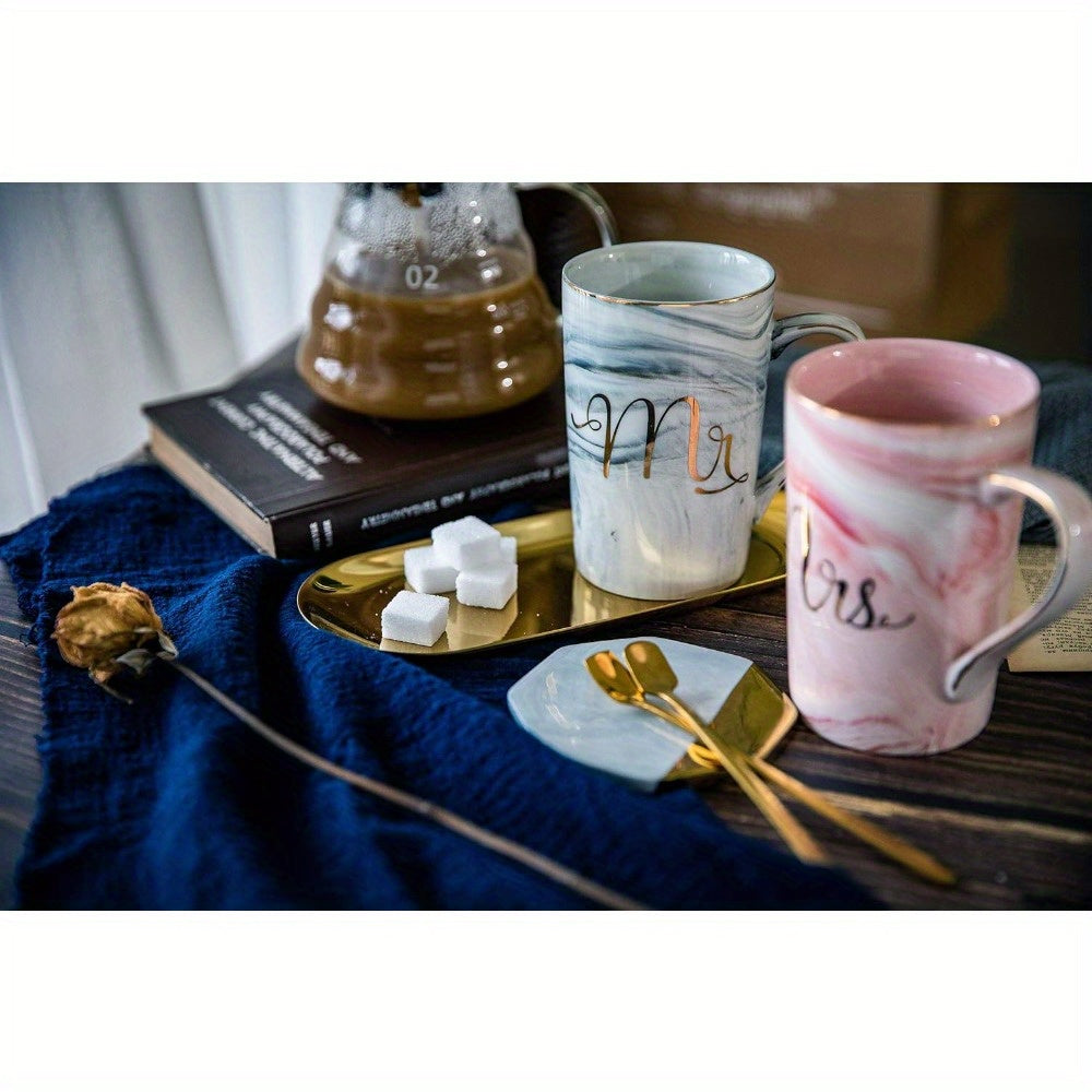 Mr and Mrs Coffee Mugs, Ceramic Marble Cups, Wedding Gifts for Bride and Groom Bridal Shower Engagement Wedding and Married Couples Anniversary, 14 Oz, Pink