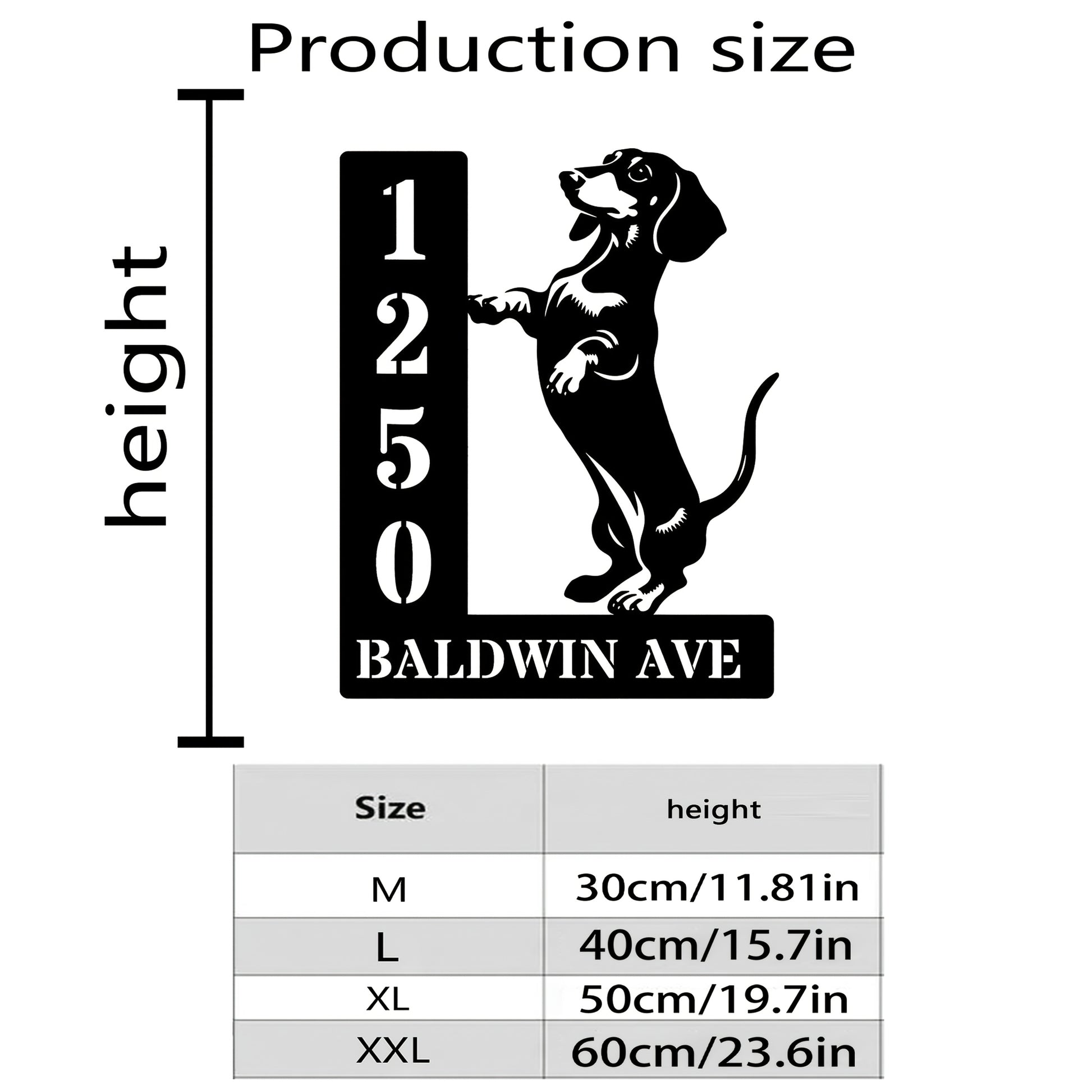 [Personalized Metal Sign] Cute Metal Dachshund Door Number Sign | Personalized Pet Address Plaque, Outdoor Animal Address Marker Decoration
