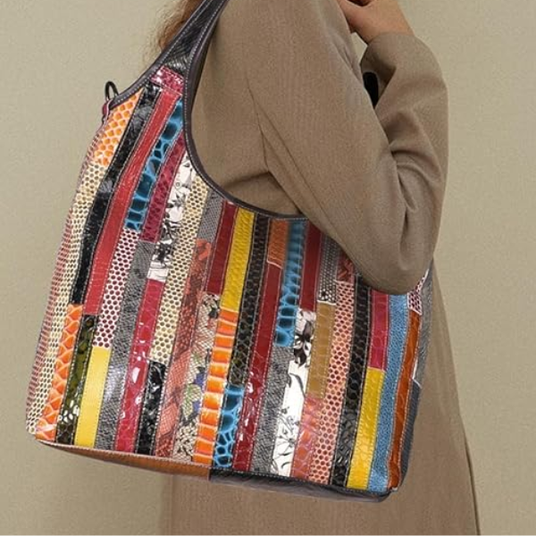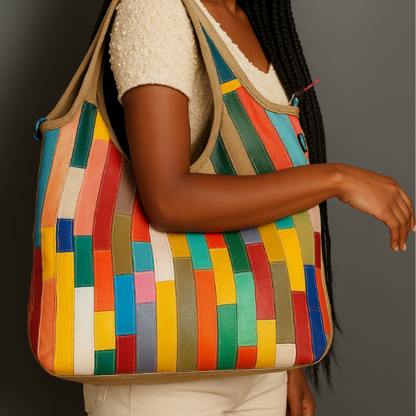 The standout feature is its vibrant patchwork of color stripes. Each bag is unique due to its random splicing pattern, meaning no two are exactly the same. While the one you receive may differ slightly from the display image, every piece is a one-of-a-kind work of art — made just for you.