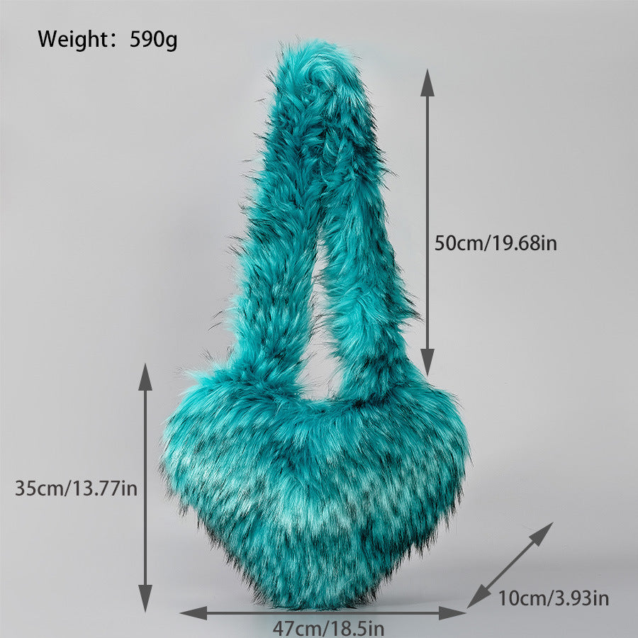 Turn heads and steal hearts with our Heart Shaped Plush Shoulder Bag. This ultra-cute accessory is designed in a unique heart shape, making it a bold statement piece for fashion lovers. It’s the perfect blend of playful and edgy, ideal for anyone embracing the Y2K, grunge, or retro aesthetic with a soft and cozy twist.